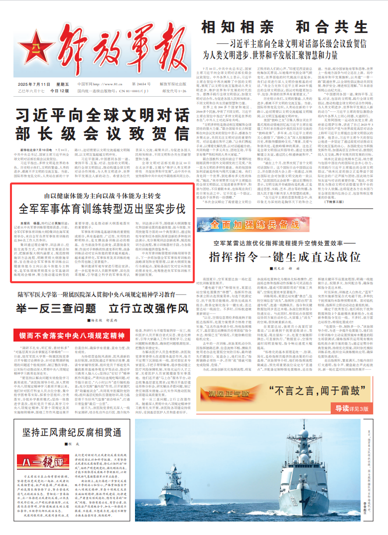 中央军委训练管理部训练局领导表示,下一步将加强全军军事体育训练的战略谋划和宏观管理,以新大纲颁发施行为新起点,紧贴备战打仗对官兵体能的需求变化,统筹推进我军军体训练不断创新发展。